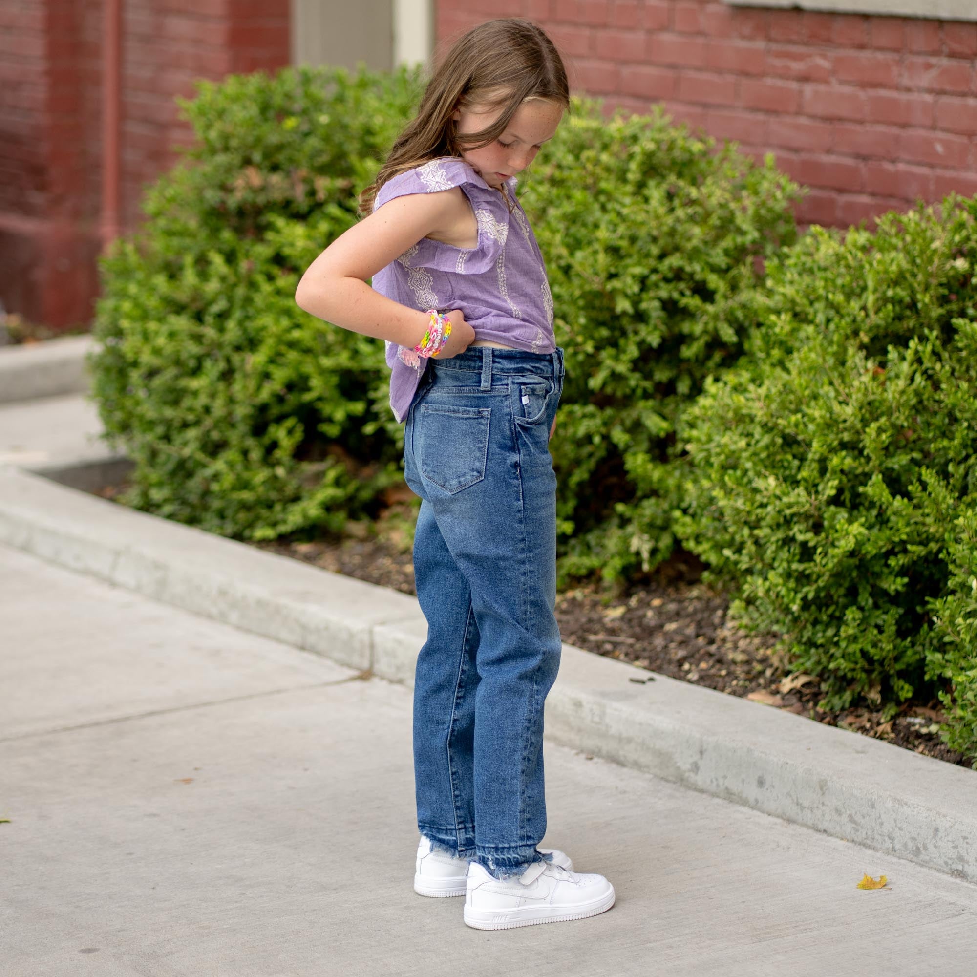 Classic with a twist! The Royal High Rise Mini Straight Jeans come in a medium wash with soft fading and whiskering for that perfectly worn-in feel. Finished with a released hem and a classic five-pocket design, these jeans offer a modern straight-leg fit that’s comfy and cool for everyday wear. Zip fly with button closure keeps it all secure and stylish.